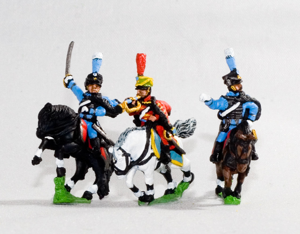 Supplied in packs of 3, each pack containing 1 Officer, 1 Standard Bearer & 1 Trumpeter