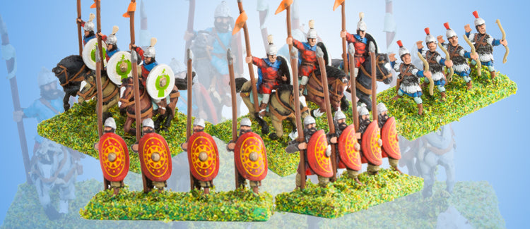 Supplied in packs of 8 miniatures - this will be a mixture of mounted and foot troops from your chosen range.